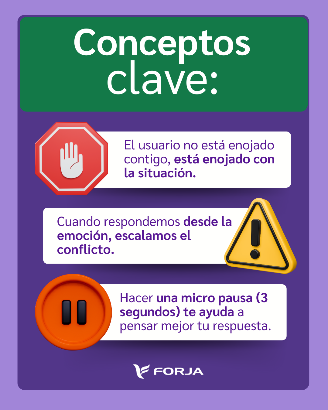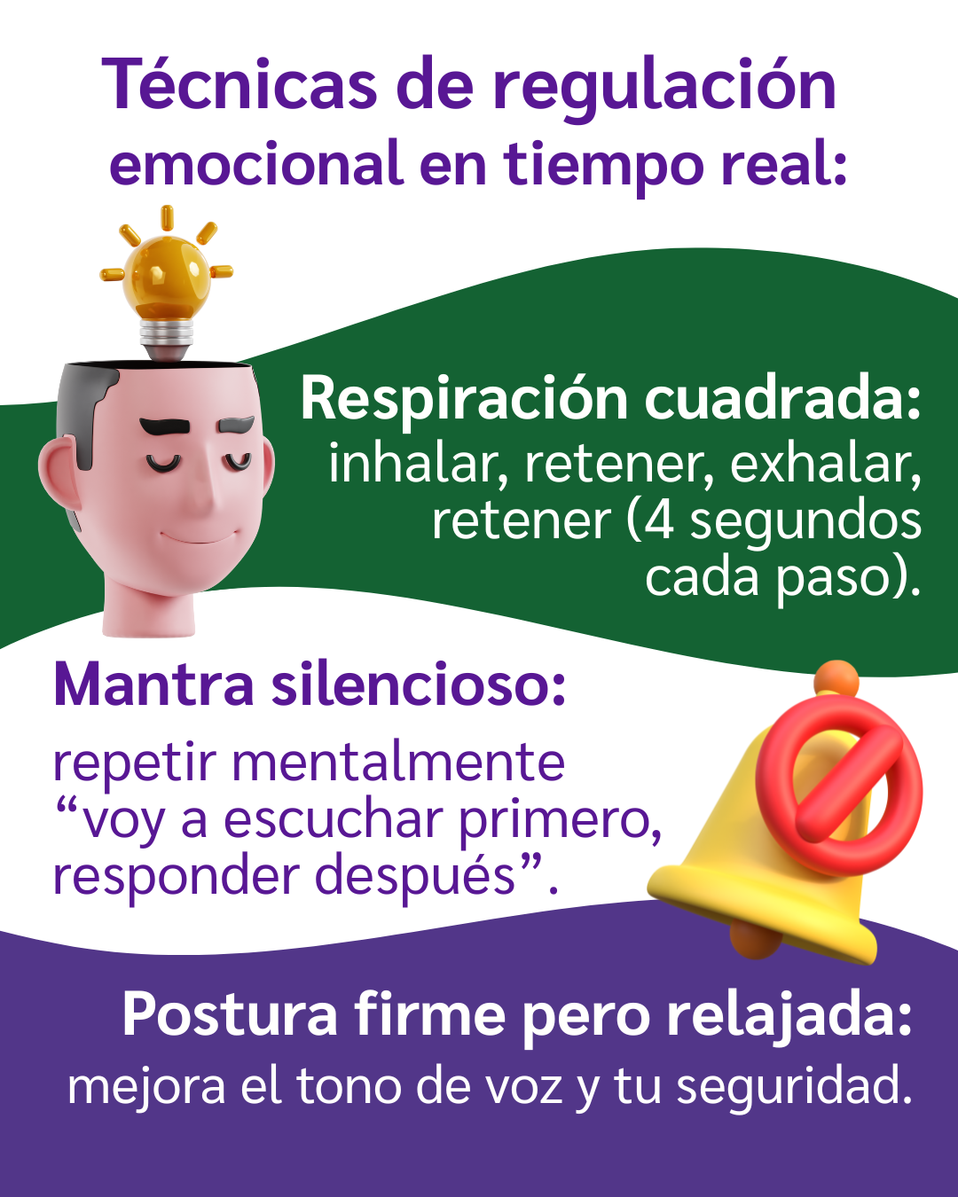 Una respiración completa (de 4 segundos) puede ayudarte a regular tu tono de voz y evitar respuestas impulsivas.