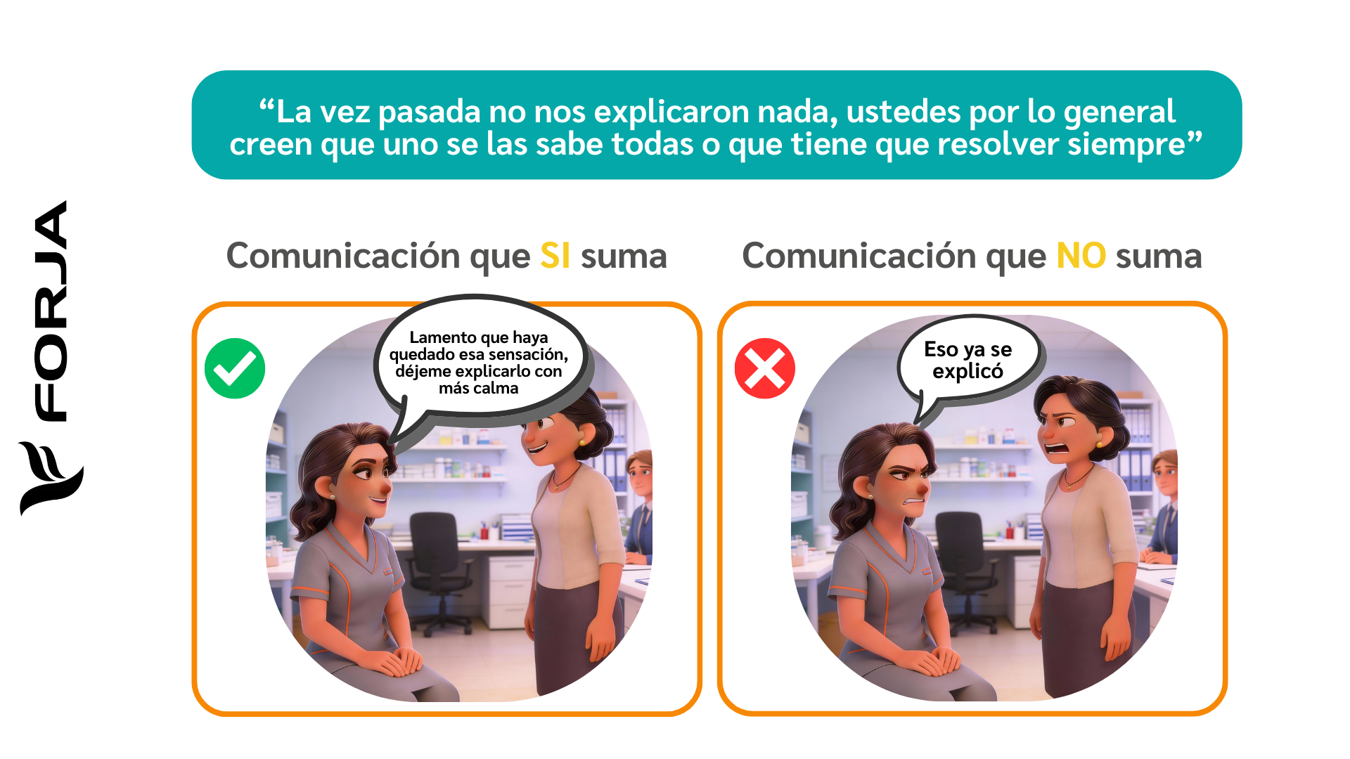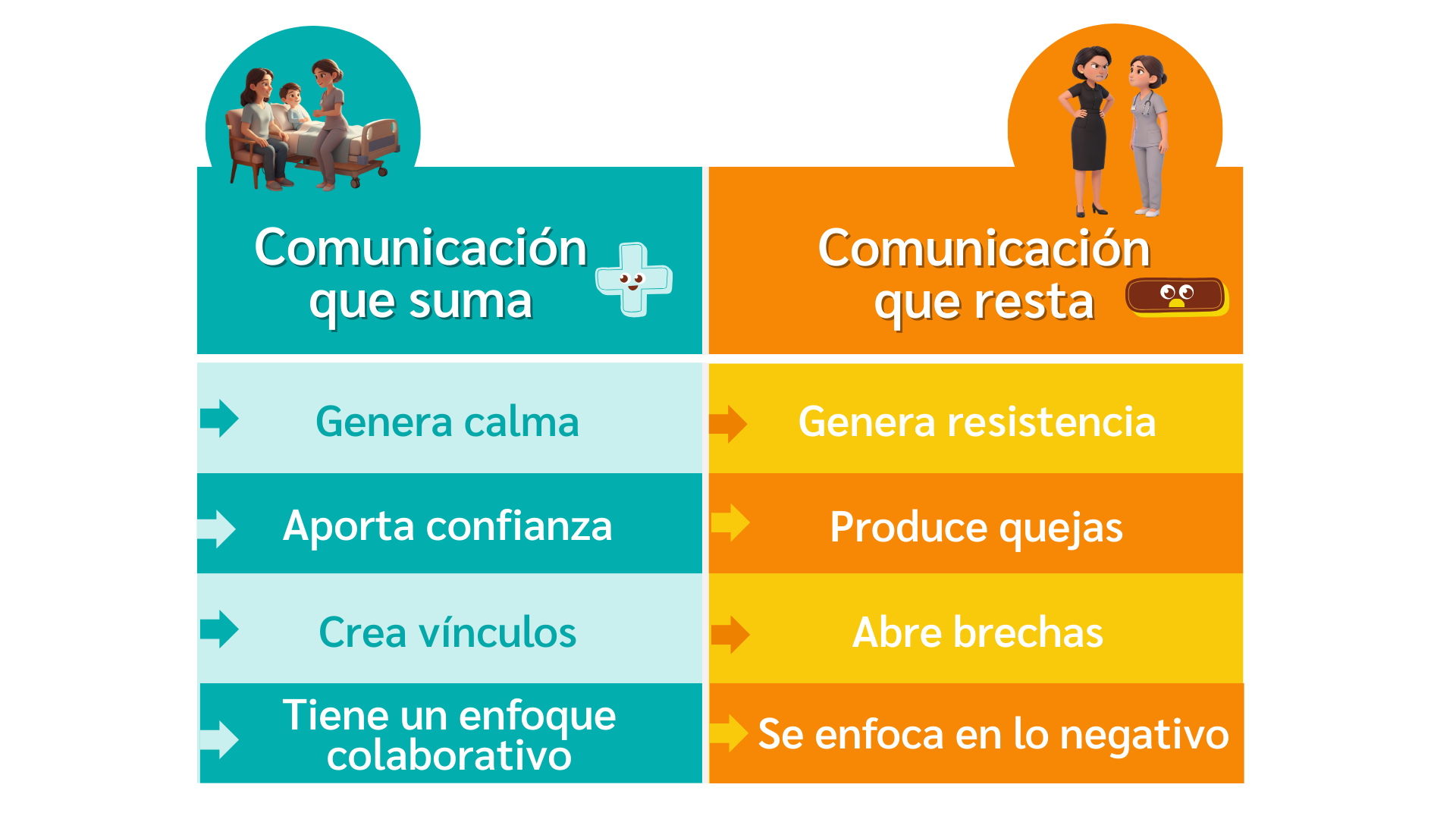Centrados en la atención al paciente podemos reconocer que en ocasiones nuestra manera de intentar acercarnos puede lograr todo lo contrario, por eso será importante reconocer la comunicación que suma y así mismo lo que puedes conseguir al emplearla