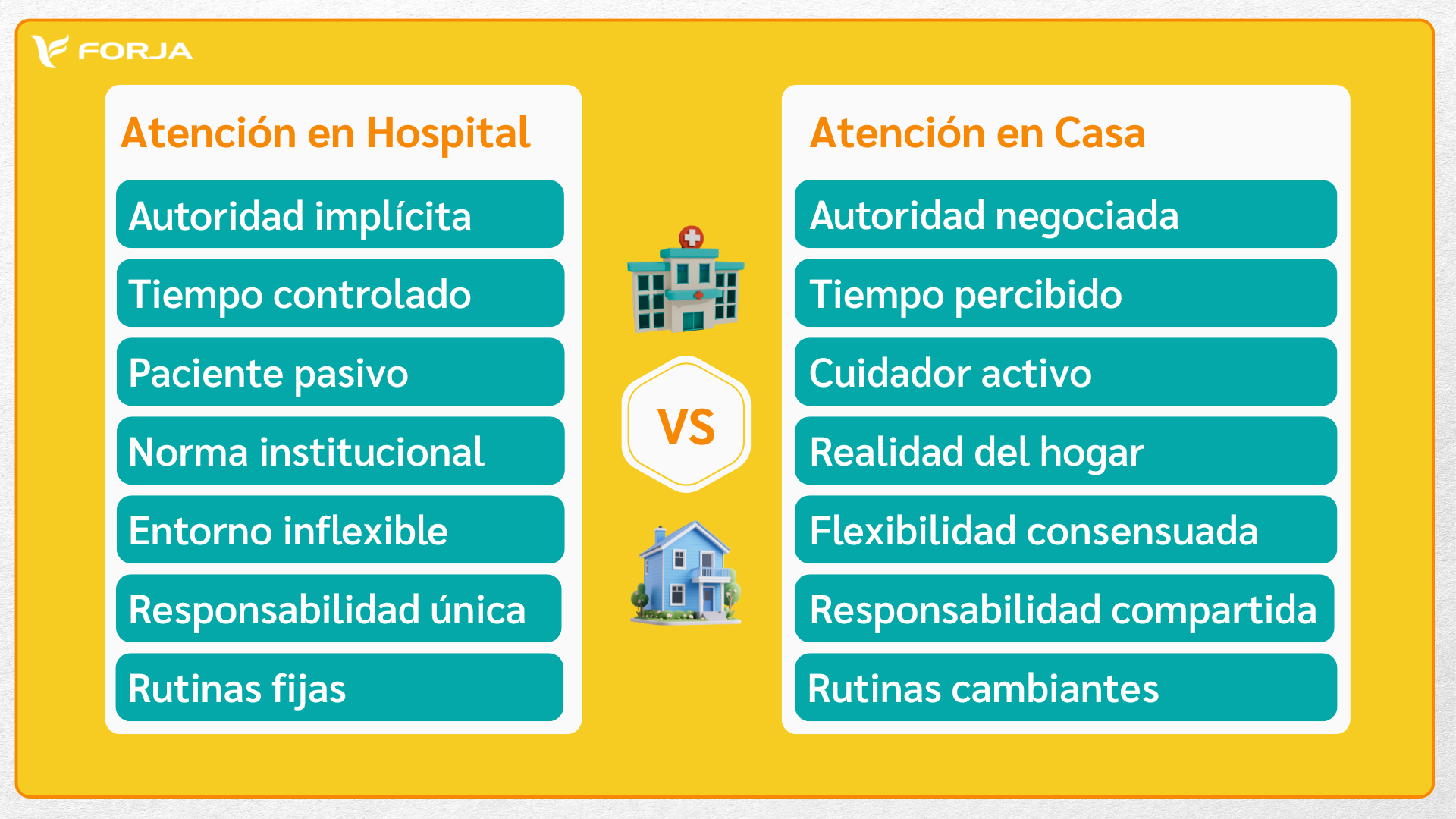 Además hay algo que no podemos dejar de lado y es, ese valor agregado que deben percibir nuestros pacientes al recibir atención en su propia casa, no solo basta con recibir un servicio sino agradecer por darnos esa confianza y dejarnos entrar en tu entorno. Veámos ahora la diferencia de atención en casa vs. en el hospital.