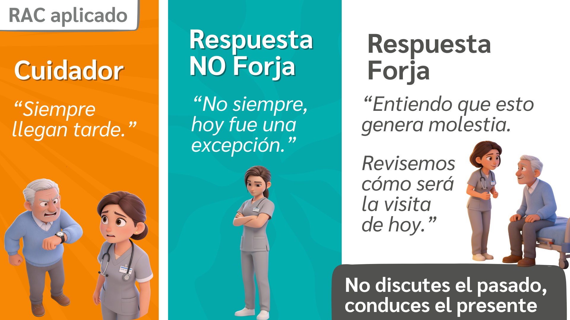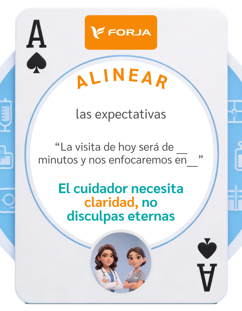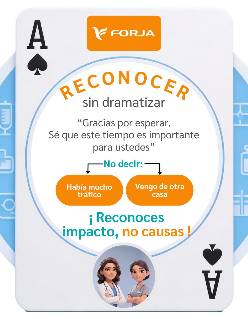 Esta herramienta es ideal para utilizar cuando encuentres que el cuidador, familiar o paciente está tenso por tu retraso o situaciones que no pudiste controlar.